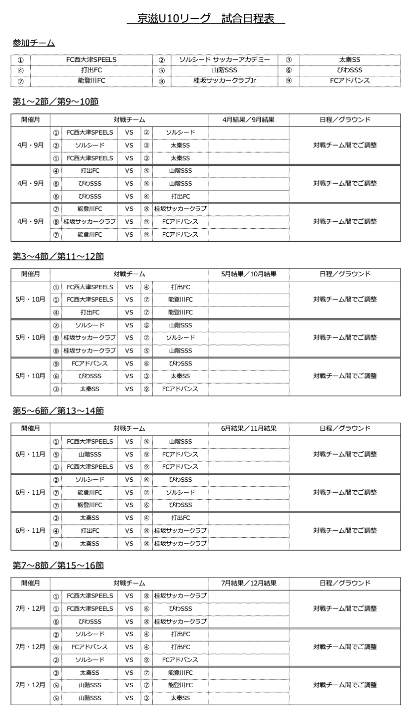 ※当該月における各節の対戦日程については、該当の3チーム間で協議し決定ください