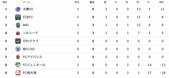 リーグ戦の順位は勝点制とする。勝ち=3点、引き分け=1点、負け=0点