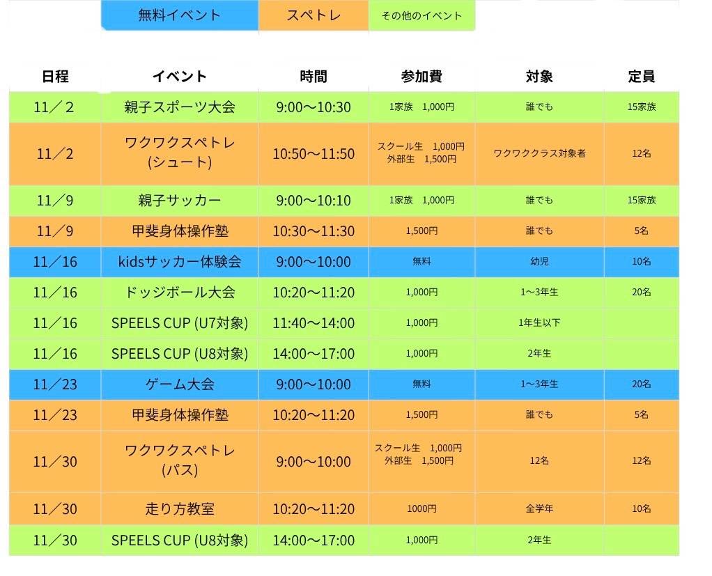 2025.10.30 イベント Lucy 11月イベント🎃 SPEELSサッカースクールでは 多様なイベントを開催しております‼️ スクール生・一般の方も気軽にご参加いただけます。 是非お誘い合わせの上ご参加ください!