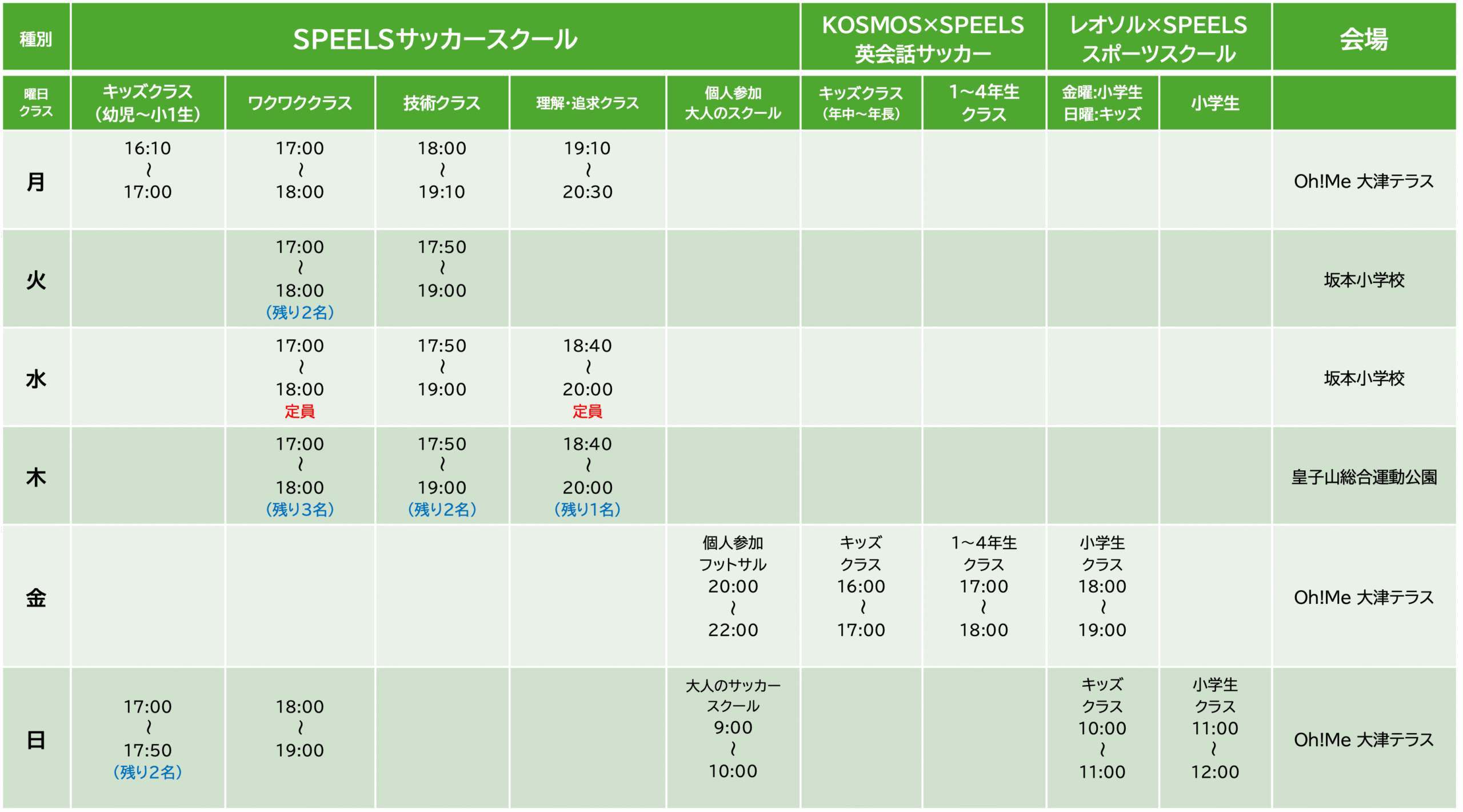 【曜日/クラス/会場/時間】→スクールスケジュールを見る