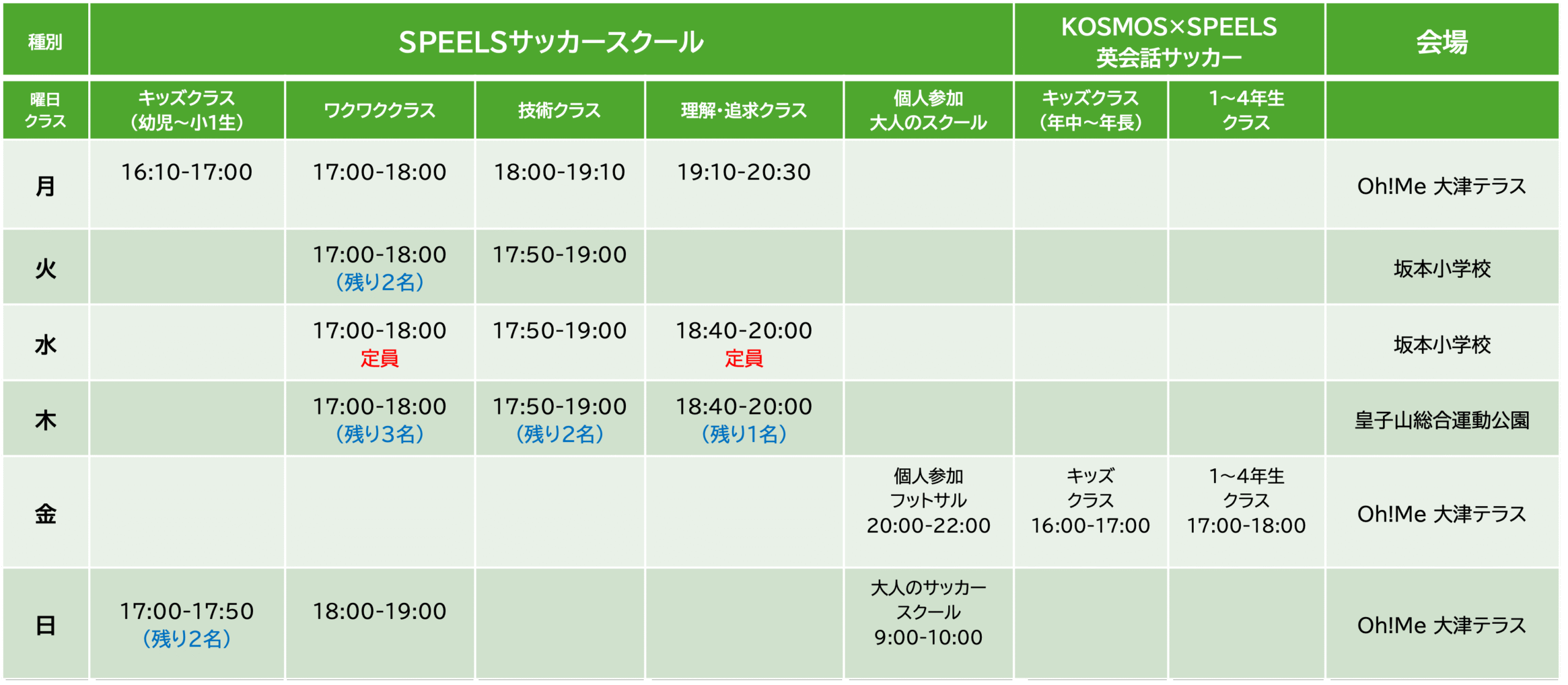 SPEELS SOCCER SCHOOLでは、質と満足度向上の為に平日クラス限定で