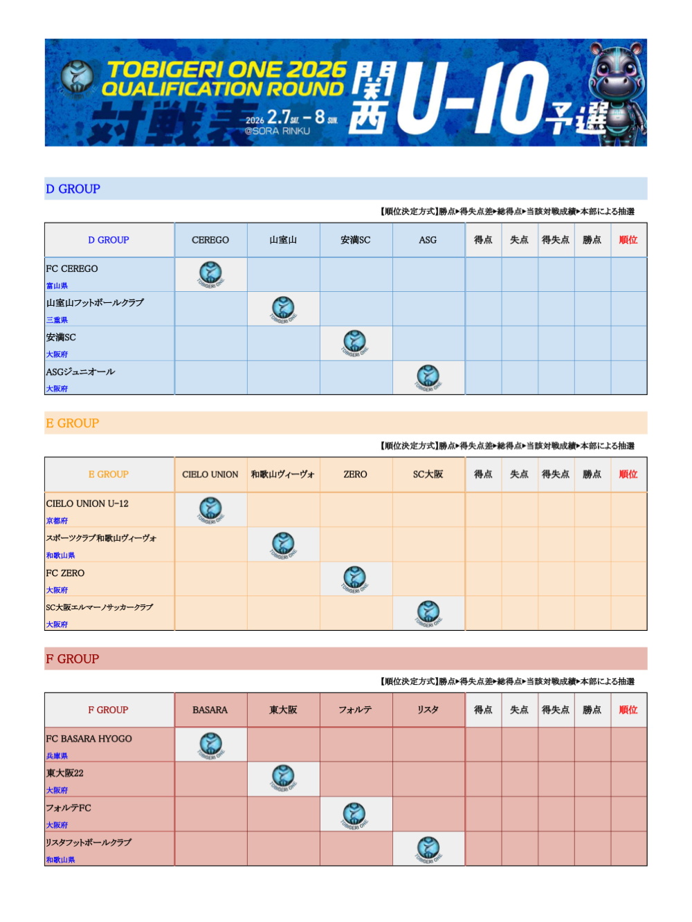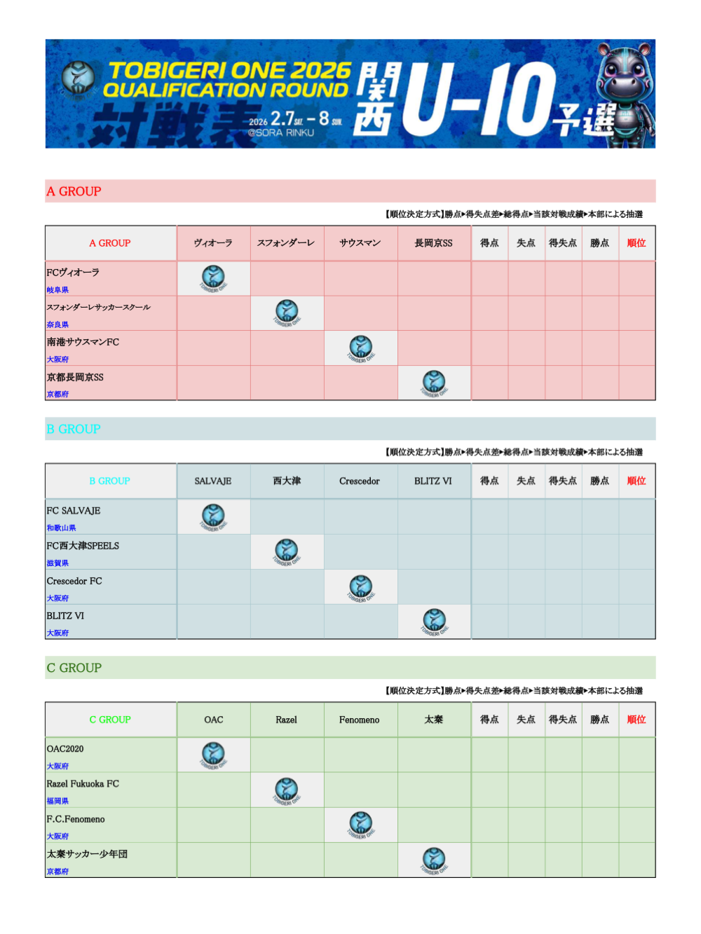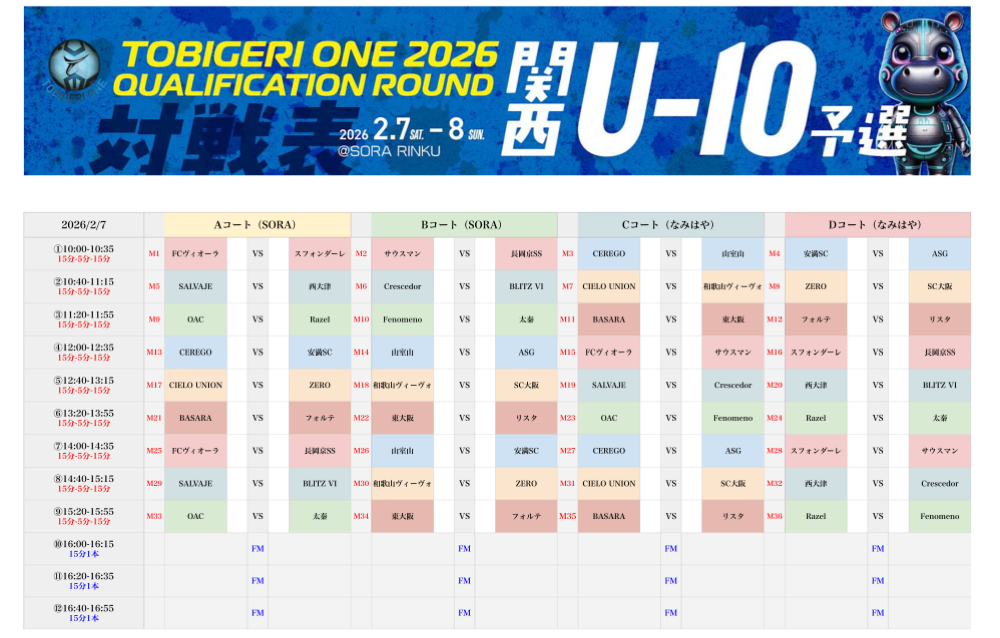 ○U9(新U10) TOBIGERI ONE 2026 関西予選 DAY1