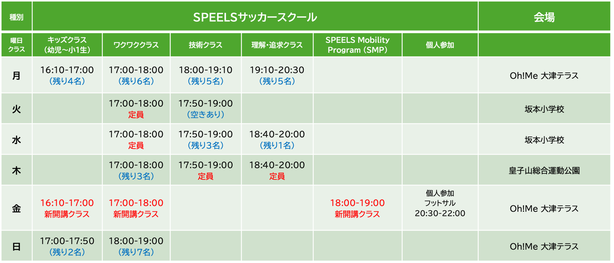 (例)いずれかの会場でのサッカースクール週1回 + SMP1回 = 大津テラス枠 週2回料金